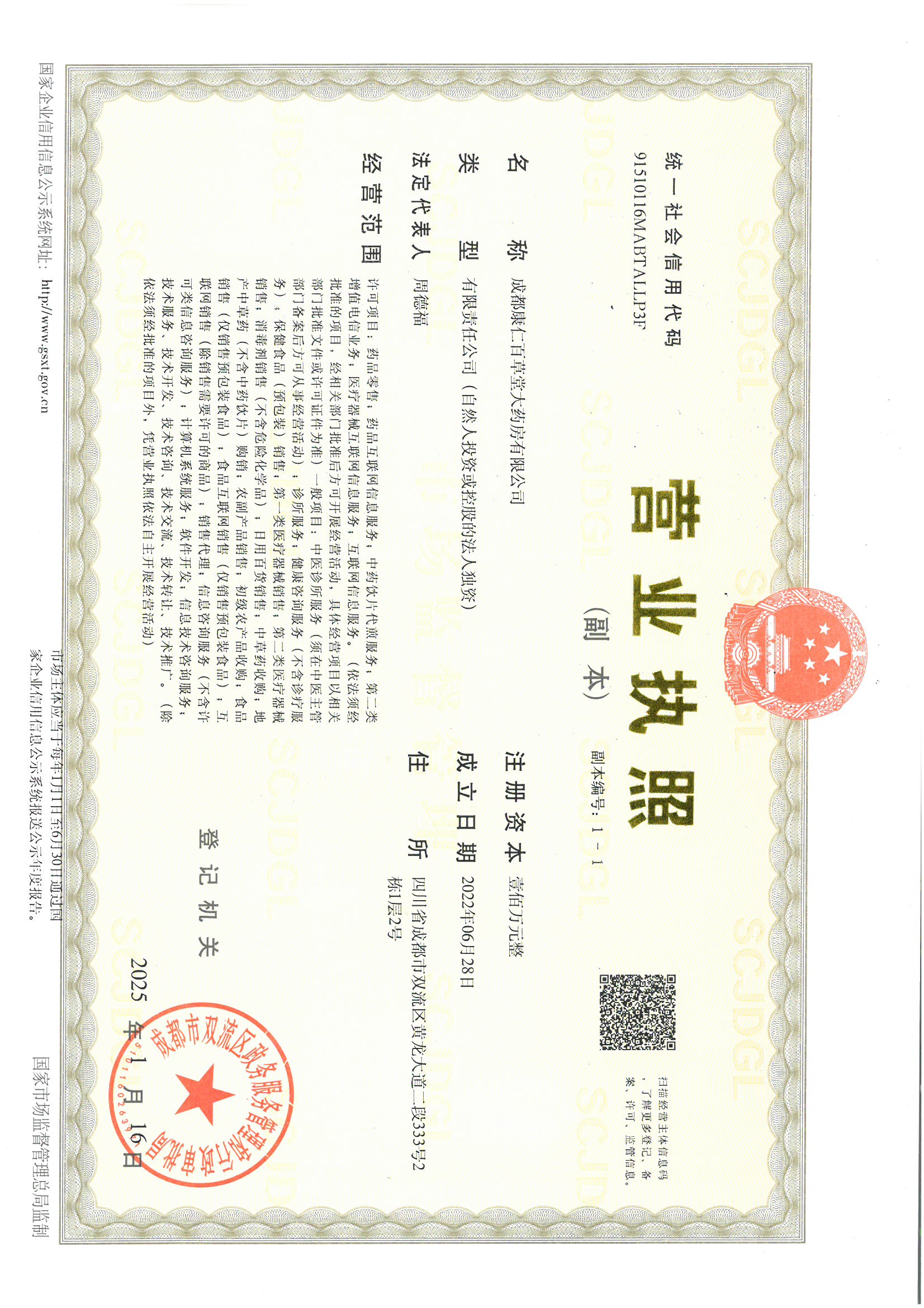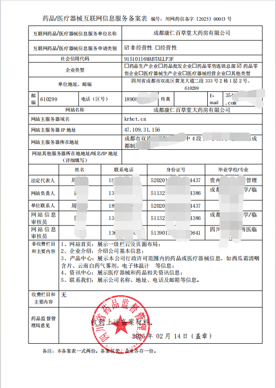 公司名称:成都康仁百草堂大药房有限公司